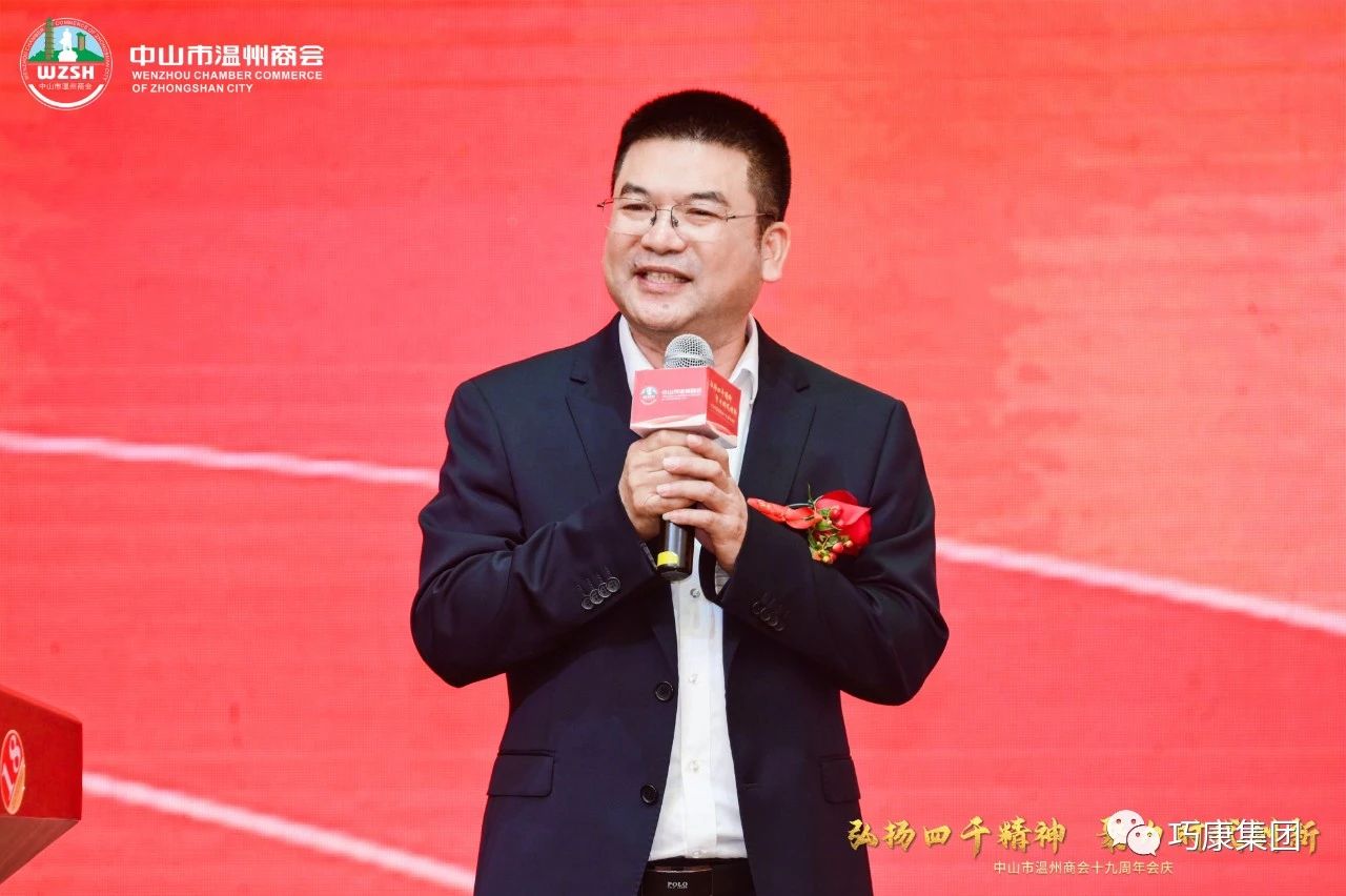 Mr. Yang Zhenqiao, President of Wenzhou Chamber of Commerce in Zhongshan and Chairman of Guangdong Qiaokang Group, delivered a speech, reviewing the 19 years of trials and hardships and journey of the chamber. He mentioned that Wenzhou businessmen have always adhered to the Wenzhou entrepreneurs' spirit of "traveling thousands of mountains and rivers, speaking thousands of words, and trying thousands of ways", and led the continuous growth of the chamber with the concept of "building a platform, sharing resources, seeking common development, and repaying society". Nineteen years have witnessed fruitful achievements. With the joint efforts of all members, Wenzhou Chamber of Commerce in Zhongshan has been recognized by the society and governments at all levels. The chamber has grown, and enterprises have developed. We will unite as one and forge ahead. At the same time, we also hope that more Wenzhou fellow townsmen will actively join this big family of Wenzhou Chamber of Commerce, so that we can work hard together to create greater glory!